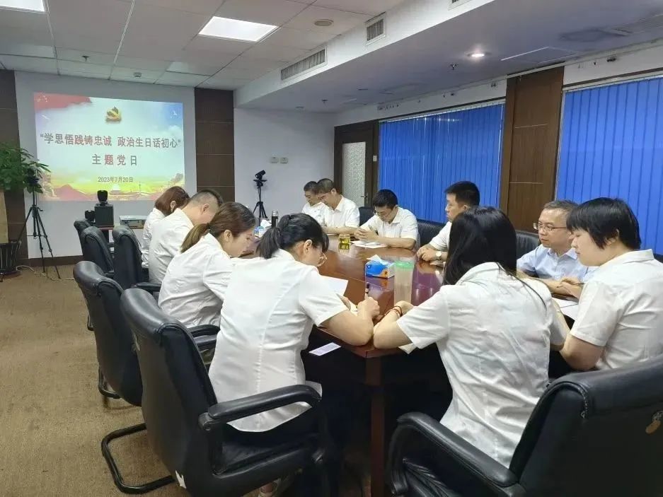 7月20日下午,新立基福州分公司党支部组织开展“学思悟践铸忠诚  政治生日话初心”主题党日活动。全体党员、入党积极分子参加活动。