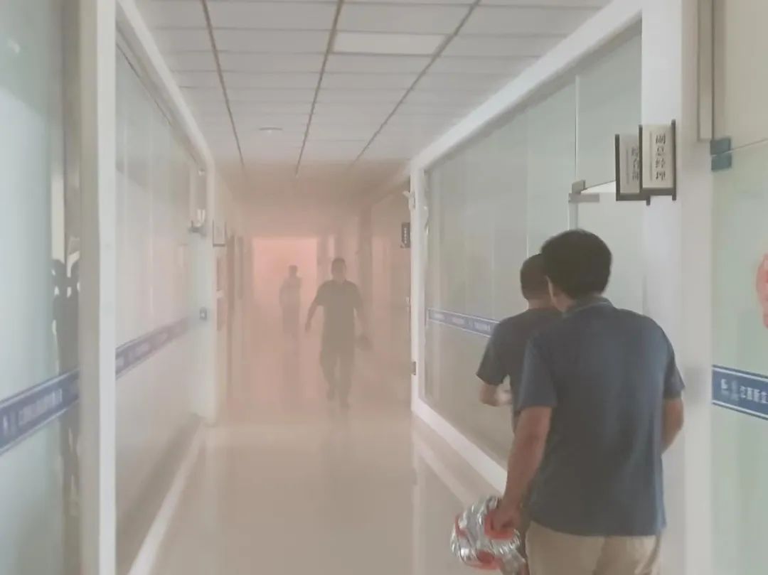 演练开始前,由总指挥讲解此次演练的情景设计、目的、要求,并下达演习开始的指令。事故模拟三楼由于线路老化,配电间起火,并迅速引燃装饰材料,火势愈演愈烈,向周边办公区域蔓延;环安部例行巡查时发现火情,并报告总指挥,总指挥立即命令,启动应急响应,组织人员疏散,避免人员伤害。