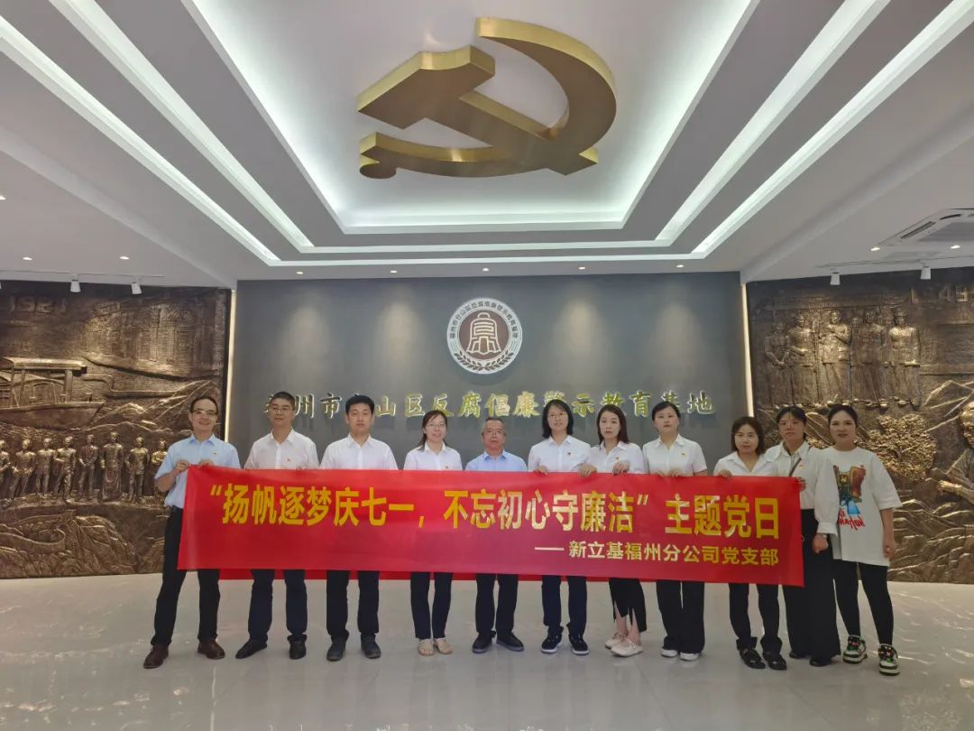 为庆祝中国共产党成立103周年,进一步加强党员廉洁文化教育,提高党员干部政治素养和党纪意识,持续增强拒腐防变能力。新立基福州分公司党支部组织党员前往仓山区反腐倡廉警示教育基地开展“扬帆逐梦庆七一,不忘初心守廉洁”主题党日,接受现场警示教育。