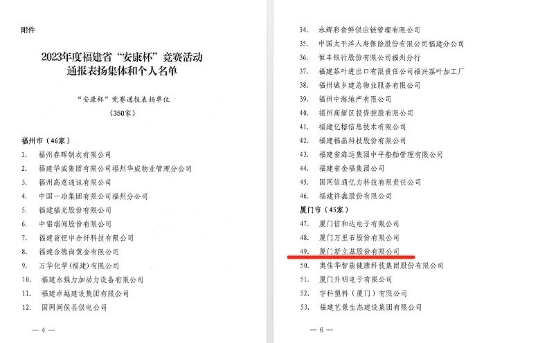 近日,福建省总工会、福建省应急管理厅、福建省卫生健康委员会联合印发《关于对2023年度福建省“安康杯”竞赛活动进行表扬的通报》,古天乐太阳集团城荣获福建省“安康杯”竞赛通报表扬单位荣誉,公司已连续三年获得该项荣誉。