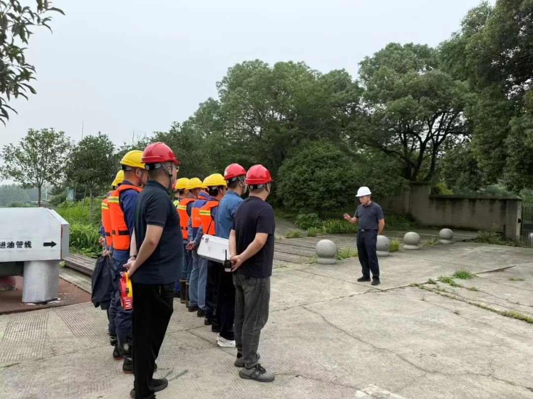 演练前期通过“桌面推演+实地预演”精心筹备,主要内容包括模拟巡检员在码头前沿发现阀门泄漏,立即上报并抢修;抢修中因不规范器具导致静电起火,初期扑救无效后启动消防应急预案;火情扑灭后,针对江面和平台污染物启动防泄漏预案处置。