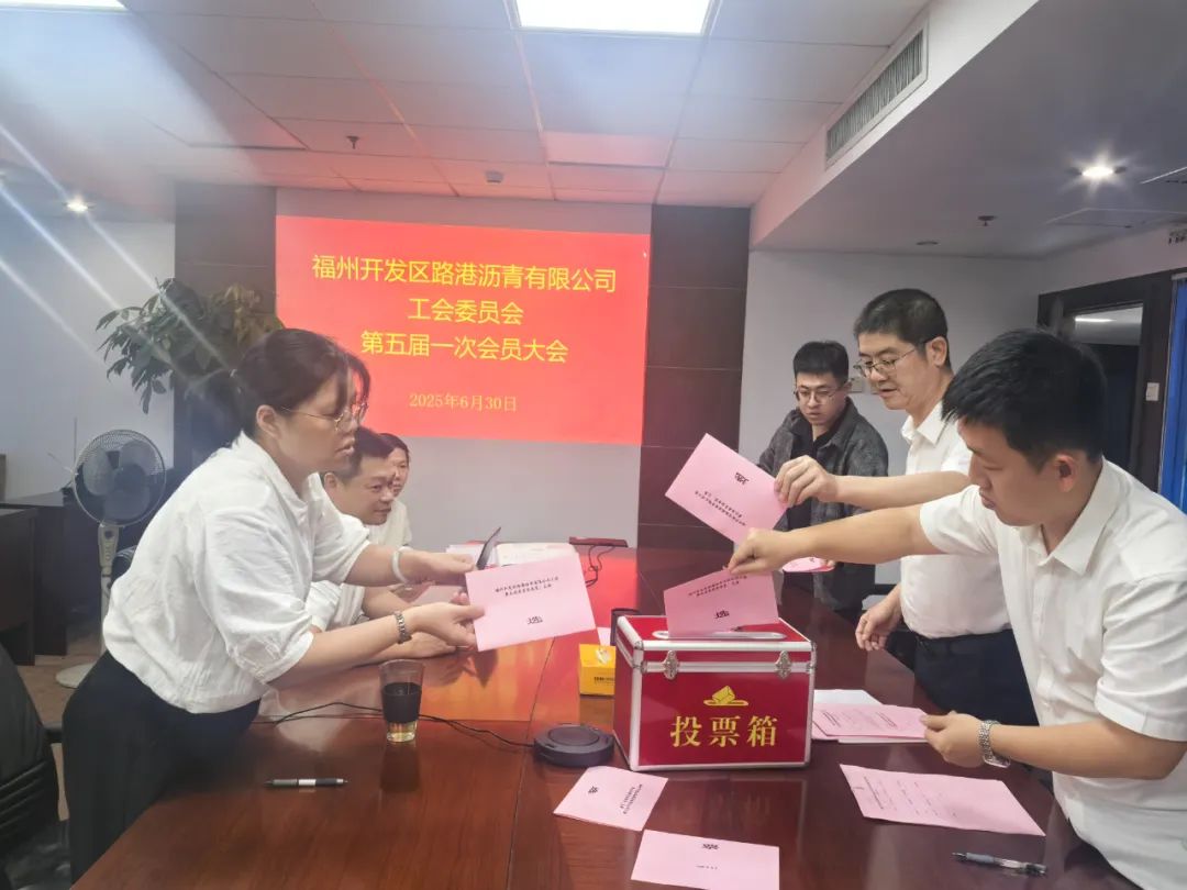 会上,上届工会委员会代表宣读福州市城建工会《批复》文件。随后大会审议并通过了《福州开发区路港沥青有限公司工会第五届第一次会员大会选举办法(草案)》,一致通过了监票人、计票人名单。选举环节采用无记名投票的方式,公开、公正地选举产生了新一届工会委员会委员3名、经费审查委员会委员3名、劳动法律监督委员会委员3名,为工会工作接续开展筑牢坚实基础。