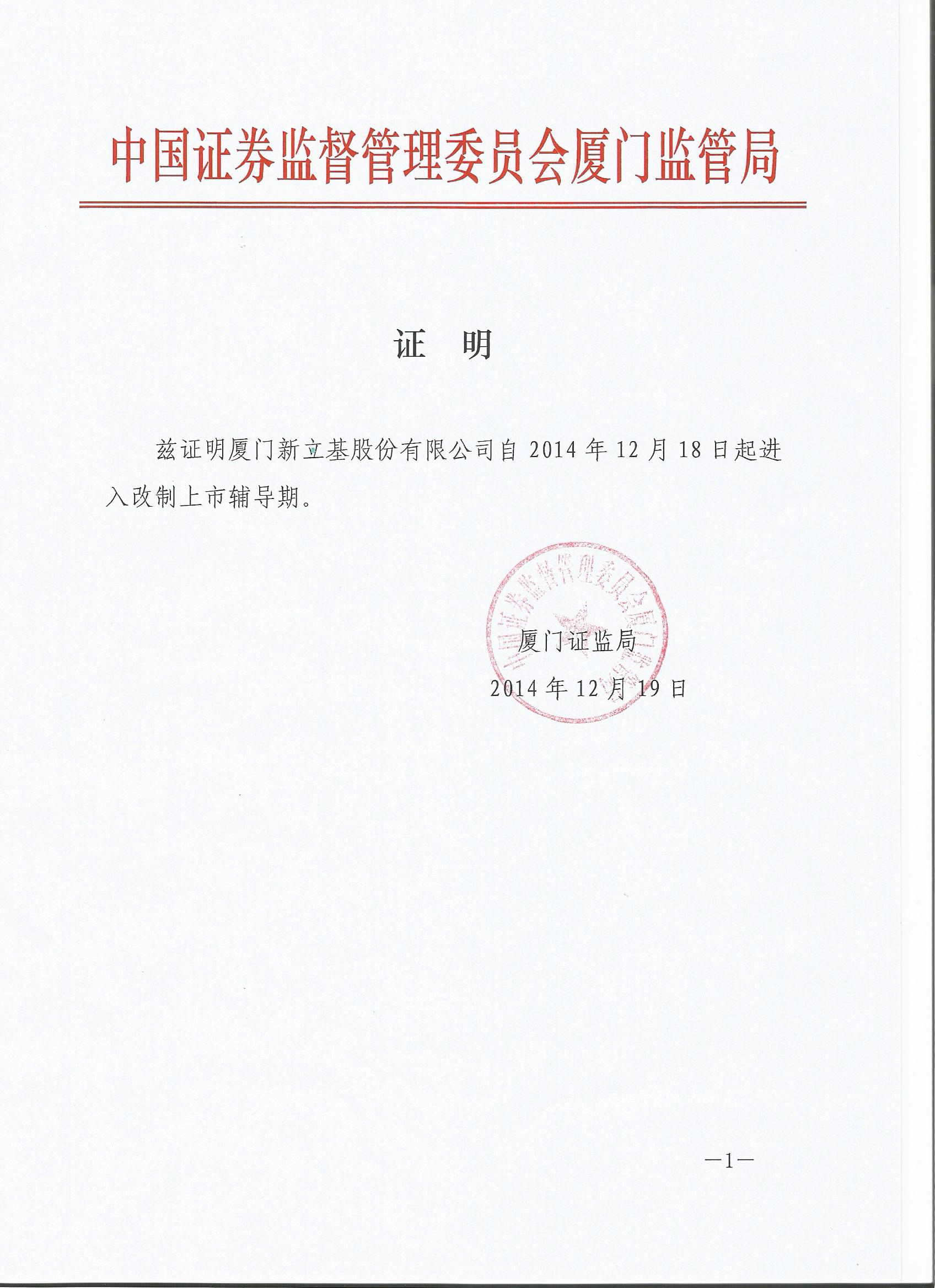 经厦门证监局批准,古天乐太阳集团城自2014年12月18日起进入改制上市辅导期。