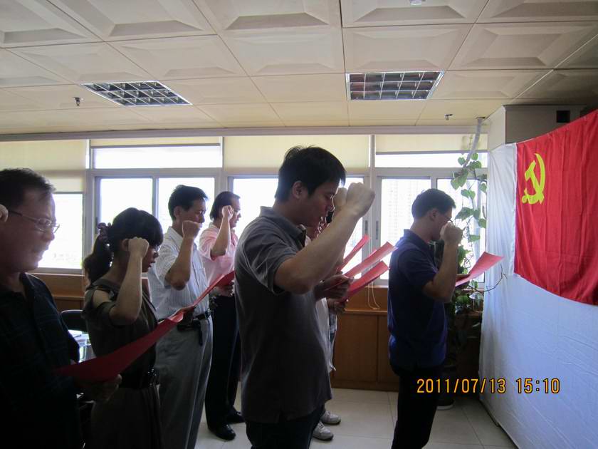 古天乐太阳集团城有限公司党支部2011年7月13日下午3点在公司会议室召开党员扩大会议,参加会议的有公司全体党员与入党积极分子,会议由吴书记主持。
