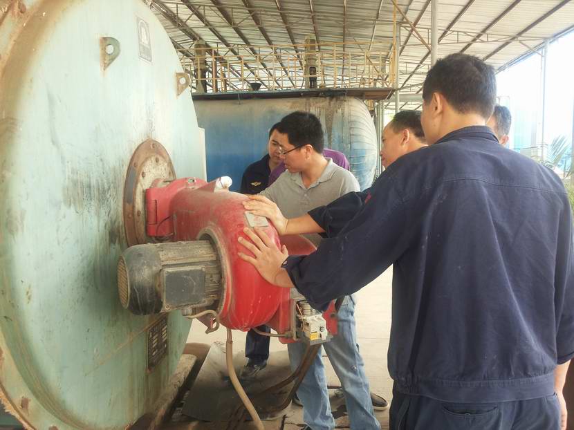 第二、加强生产业务知识学习:为加强生产人员对于锅炉等设备机器新工艺的技术学习,6月5号特聘请原福州锅炉厂技术人员到我司库区针对锅炉使用过程中的工况表现情况进行分析,并指导我司员工对锅炉的保养、检查、维修等具体实施方法进行学习和认识。通过此次现场故障的演练及锅炉拆装的解说交流,不但提高了生产人员对于锅炉的相关理论知识的认识、也巩固了今后故障检维排查方法,并有效提高岗位技术水平。