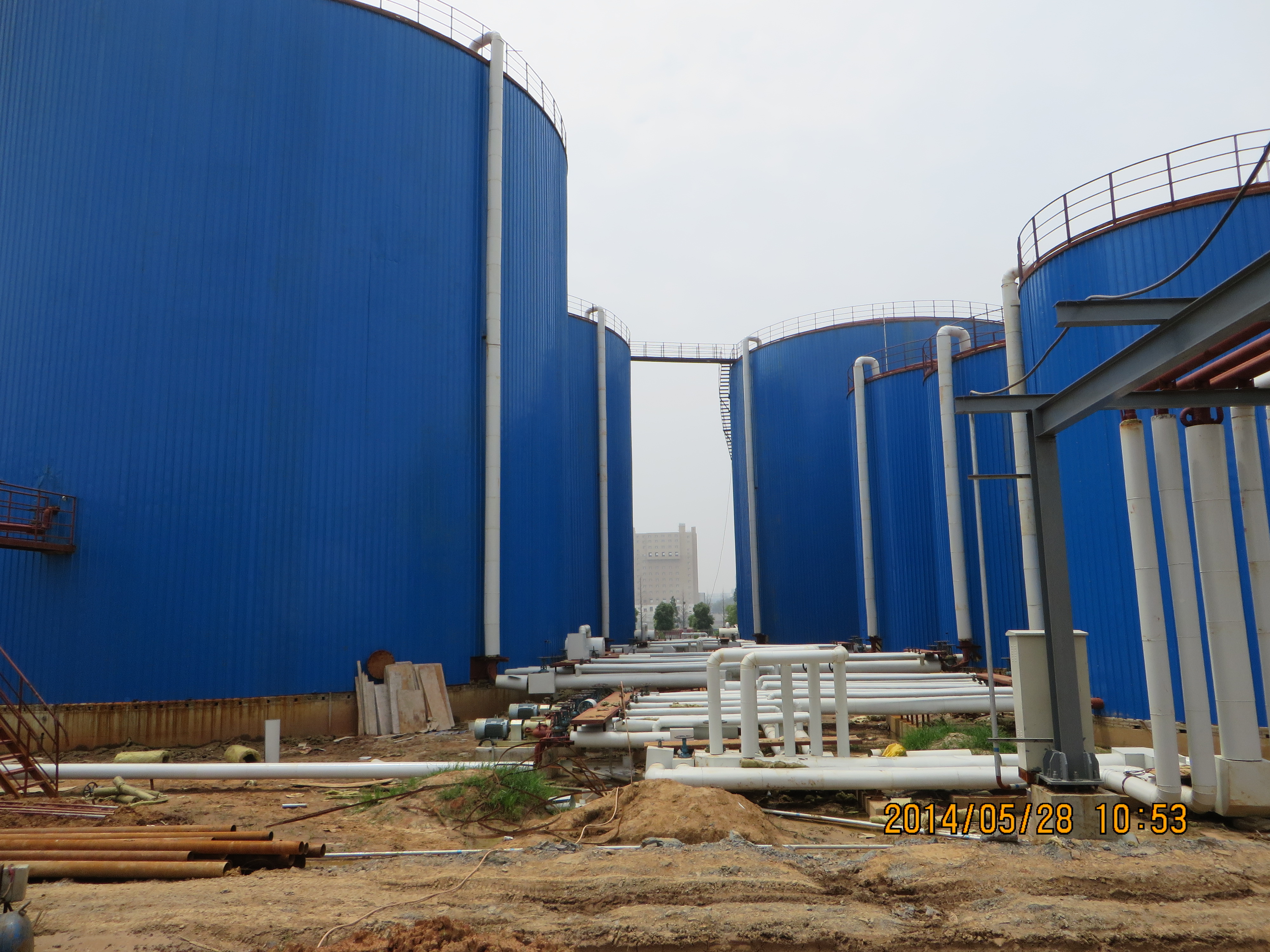 目前201#-207#沥青罐体保温层已基本安装完毕,并以通过罐体罐容检测,输送管道保温工作进入扫尾阶段。化验楼、食堂建设已基本建成,目前在对楼内地面、墙体进行清理,预计6月中旬可以交付办公,二期工程场地平整工作已接近尾声,现正在进行零星工程。综合办公楼现已进行到四层建设,预计本年度7月中旬主体工程可以完工。锅炉房、改性沥青生产场地已基本完成,锅炉及配套设施、改性沥青生产线及配套设施议案转完毕,现正在进行调试等工作。