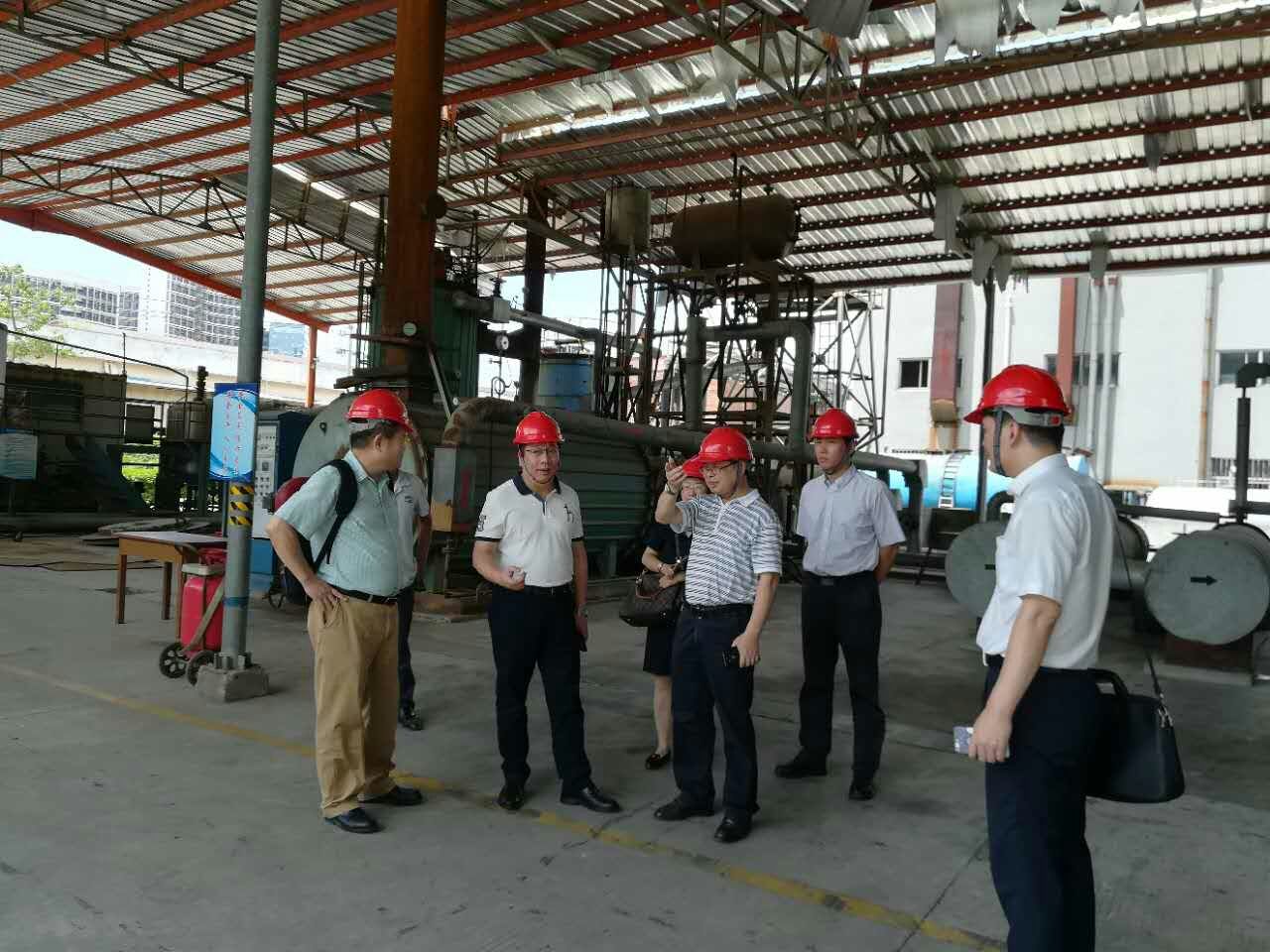 2017年8月24日上午,福建交通运输集团陈乐章副总经理带领集团安监部一行莅临角美库区进行“安全生产大排查大检查”专项工作。检查组领导先后对库区重点部位如:SBS仓库、锅炉房、生产区等进行认真细致的安全检查,随机抽取职工访谈,考核储存沥青、导热油特性及现场应急处置措施的操作示范。