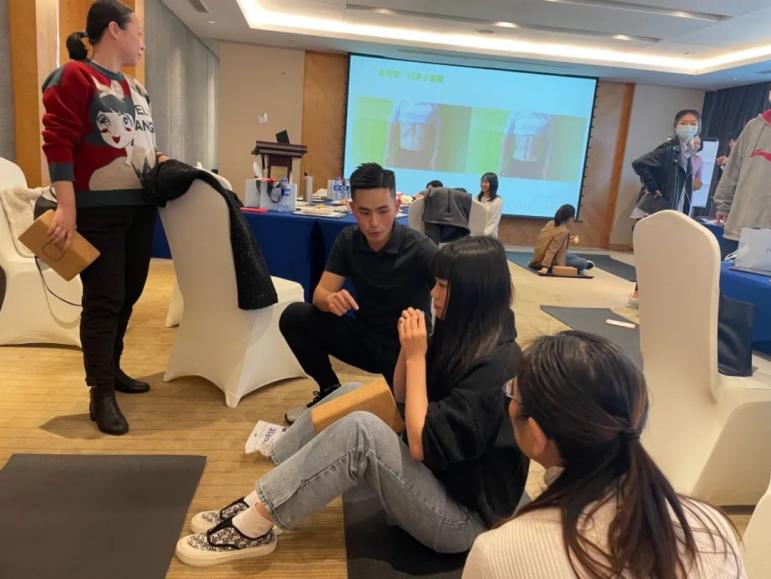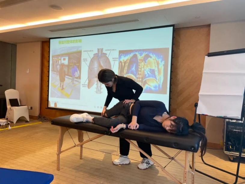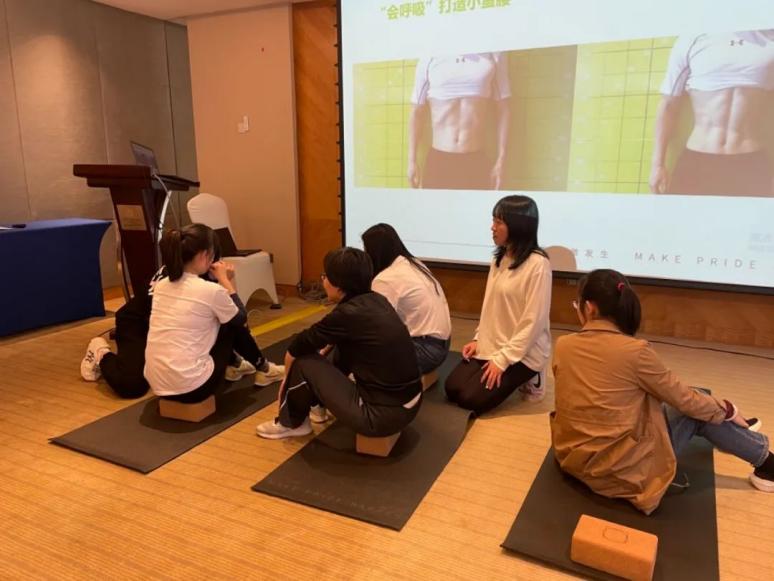 活动特邀形体老师讲授日常生活中疲劳时如何自主放松缓解以及身体维护的小知识。随后大家进行了集体核心训练,老师针对每个人的训练情况进行一对一的指导。