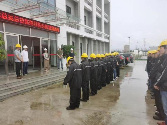 在泉港库区,总经理林影、副总经理吴稼民现场观摩防台防汛防泄漏应急演练。