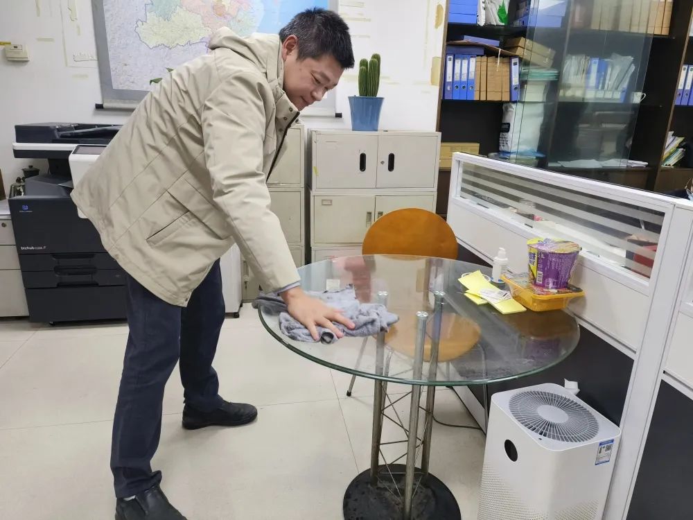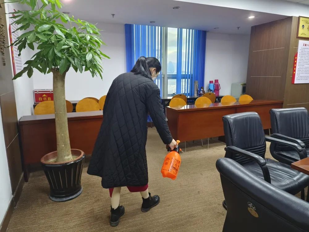 活动中,组织大家使用消毒液对公司各部门办公场所、走廊、盥洗区等进行环境消杀,开展了办公区域的环境卫生大扫除,以此引导职工自觉养成良好的个人生活习惯和践行文明健康的生活方式。